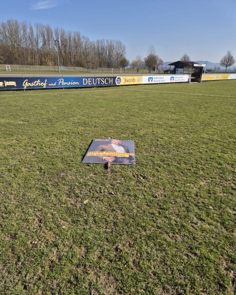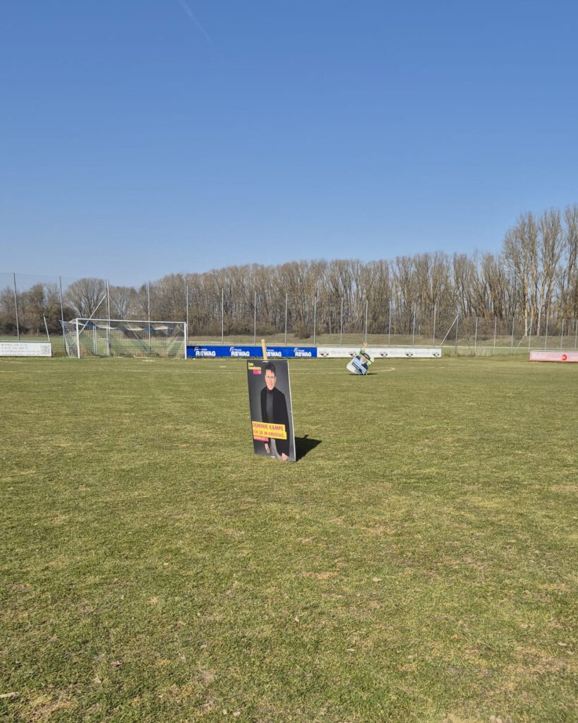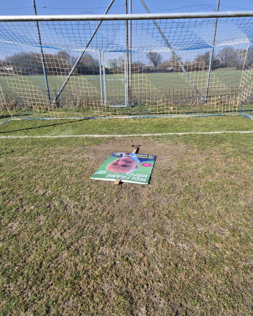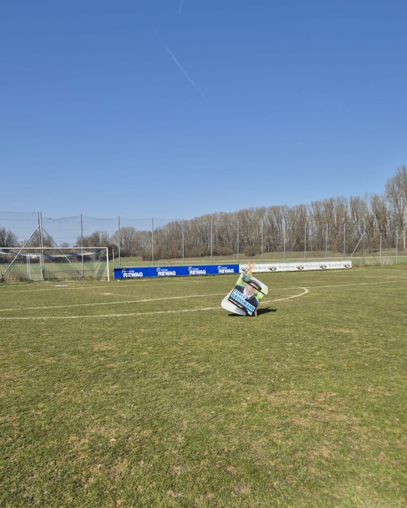Postscriptum: Vandalismus bis zuletzt. Kurz nachdem ich den Text veröffentlicht hatte, bin ich mit dem Hund gegangen. Und was sehe ich? Abriss. Wieder einmal. Diesmal haben die Honks auch noch die Plakate ein paar Hundert Meter weiter auf den Rasenplatz des TV Barbing geschleppt und dort verteilt. Vom Damm aus sah ich, wie J. vom Verein die Plakate beiseite schaffte. Danke dafür!