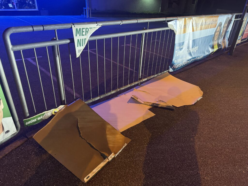 Der Schaden an den Plakaten von BÜNDNIS 90/DIE GRÜNEN beläuft sich derzeit, einen Tag vor der Wahl, auf gut 300 Euro. Das ist Geld, das Mitglieder und Mitmacher:innen gespendet haben, aus der eigenen Tasche.